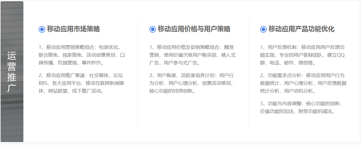 2、移动应用推广渠道:社交媒体、论坛BBS、各大应用平台、移动互联网新闻媒体、网站联盟、线下推广活动。